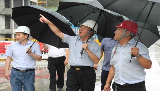 2018年07月04日下午,省建設廳鞏魁生副廳長攜建管處主要領導,冒雨前往我公司項目——錦藝四季城C地塊進行調研。公司董事長袁學紅、總經理李杰、副總晁岳鋒、總工孫全明、工程部經理參加座談并陪同調研。