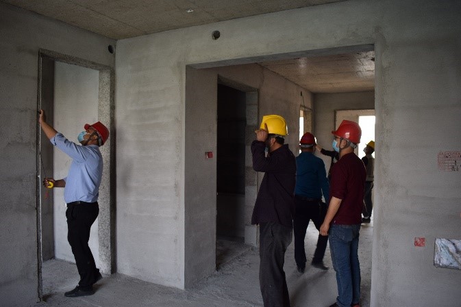 實(shí)測實(shí)量小組由錦藝四季城K地塊、Q地塊項(xiàng)目技術(shù)負(fù)責(zé)人朱耀朋、武培月帶隊(duì)陪同第三方評(píng)估人員,主要對(duì)主體的垂直度、平整度,樓板厚度,構(gòu)件截面尺寸,頂板水平度,以及抹灰工程的垂直度、平整度,陰陽角方正度、房間方正性、墻面空鼓開裂和觀感等進(jìn)行了系統(tǒng)的評(píng)估和檢測。